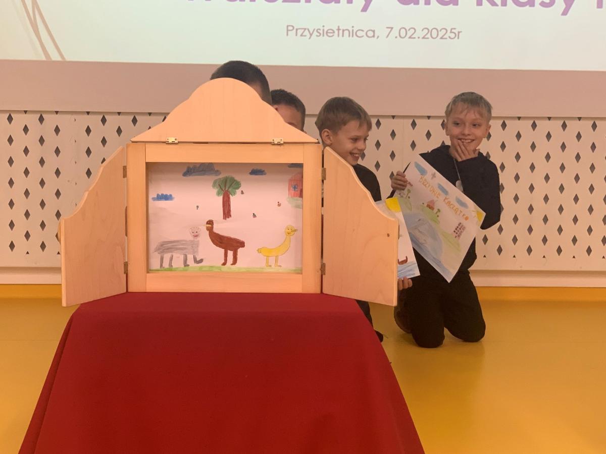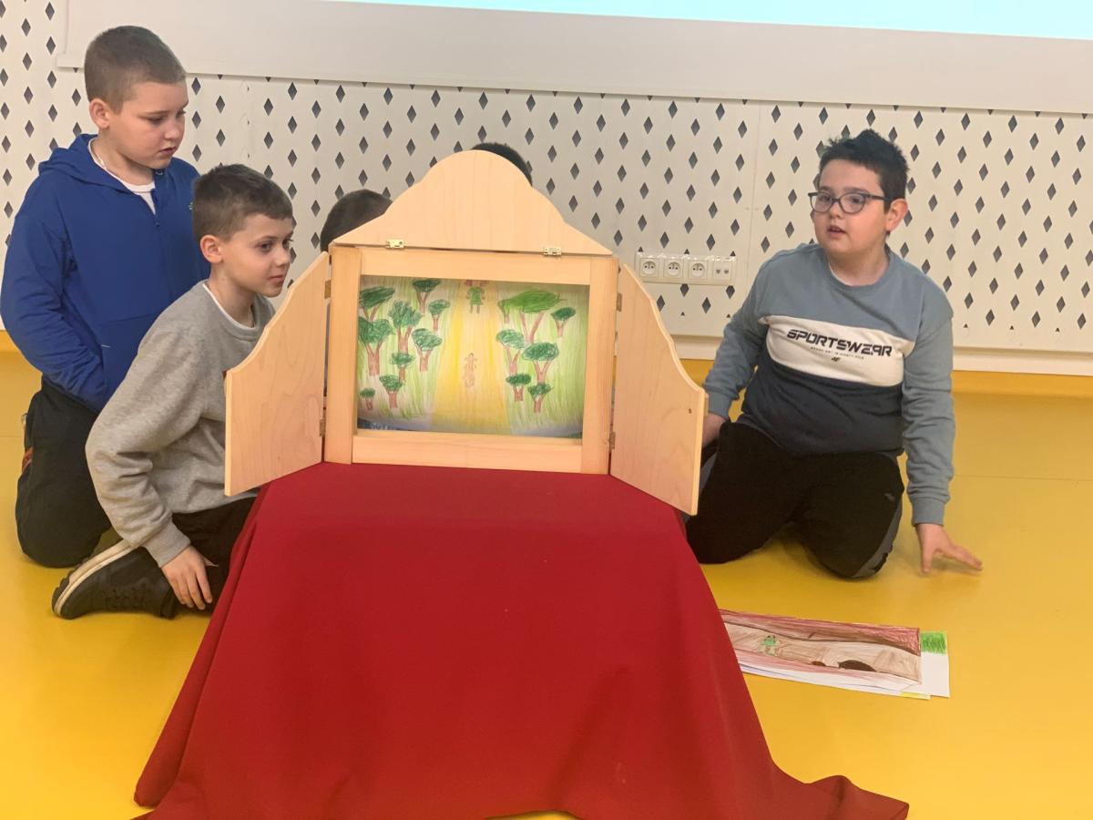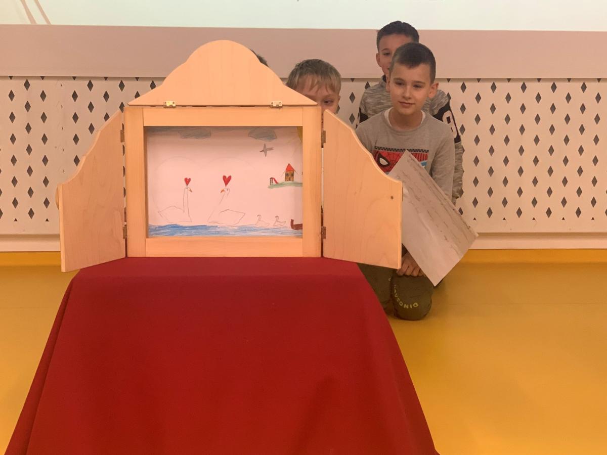 Teatrzyk Kamishibai wywodzi się z Japonii i jest techniką opowiadania i czytania. Opowieść przedstawiana jest w drewnianym parawanie na kartonowych planszach z obrazkami i tekstem. Po wysłuchaniu opowiadania, sami wzięli się do pracy. Podzieleni na grupy projektowali, rysowali i tworzyli tekst potrzebny do opowiadania historii.