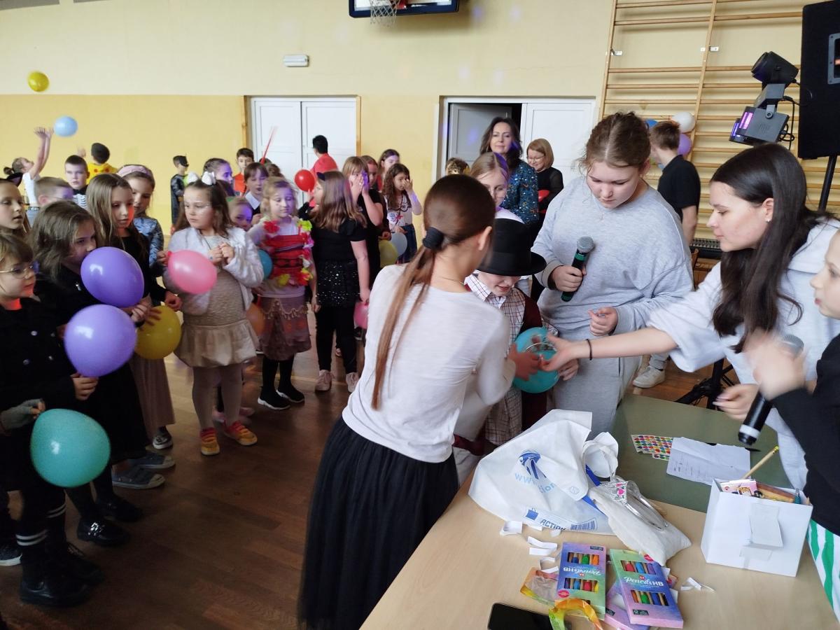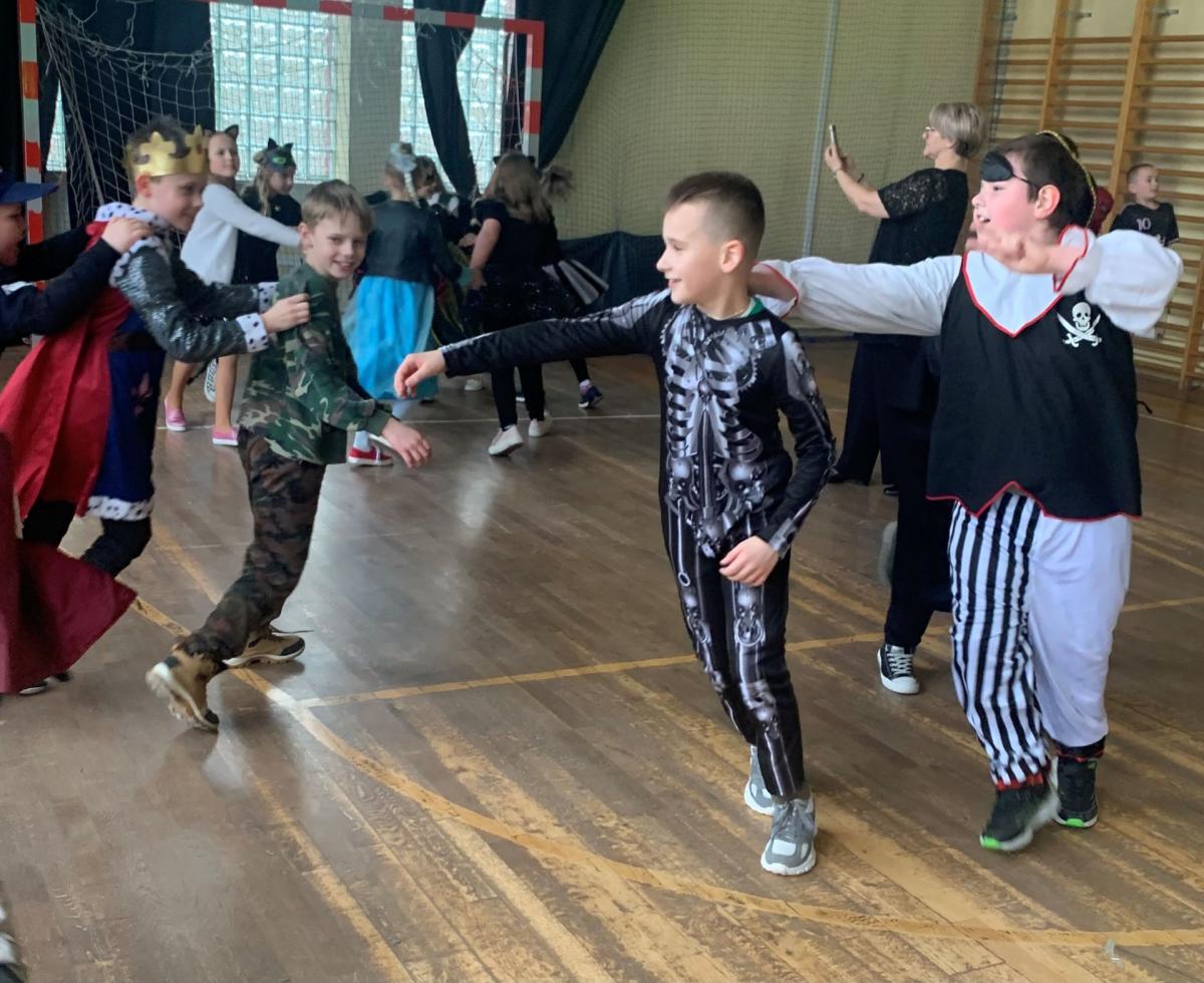 W tym dniu odbyła się również zabawa karnawałowa dla klas 0-3. Dzieci w swoich kolorowych i pomysłowych strojach wyglądały wspaniale. Tańce przeplatane były różnymi zabawami i konkursami przygotowanymi przez Samorząd Uczniowski, a zwycięscy nagradzani głośnymi brawami i drobnymi upominkami. Wspomnienia z tego balu z pewnością na długo pozostaną w naszej pamięci.