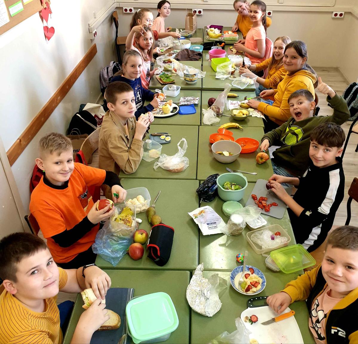 • przygotowywanie zdrowych przekąsek – w ramach zajęć uczniowie przygotowywali sałatki i kanapki, ucząc się zasad zdrowego odżywiania;
