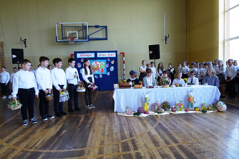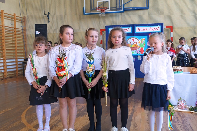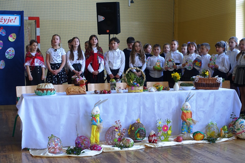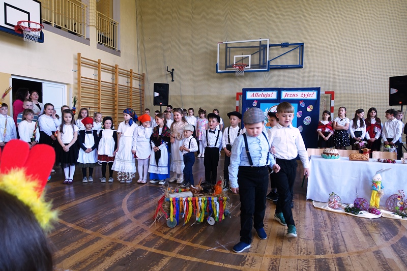 Podczas występu można było zobaczyć i poczuć zapach świątecznych ciast, pieczywa, wędliny, chrzanu i jajek oraz przypomnieć sobie ich symbolikę. Nie zabrakło również tradycji związanej ze śmigusem – dyngusem, której w sposób humorystyczny doświadczyli starsi uczniowie.