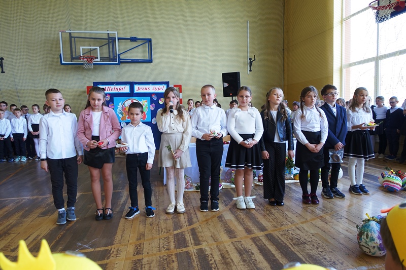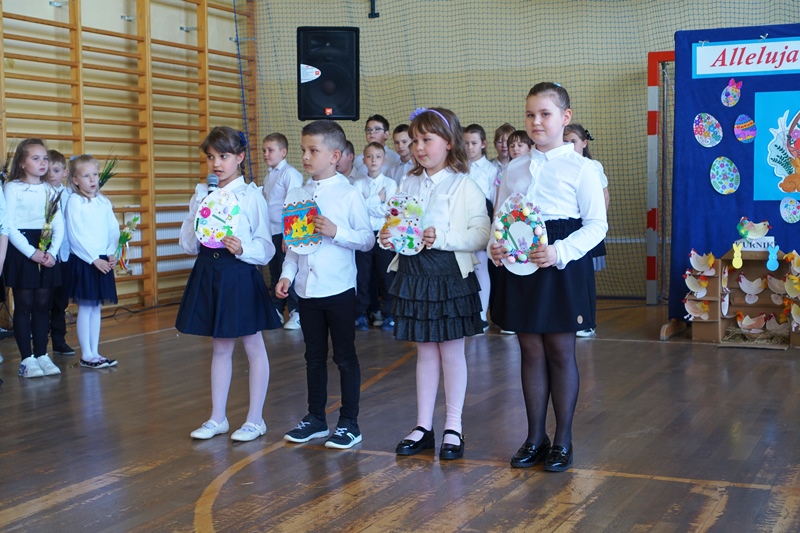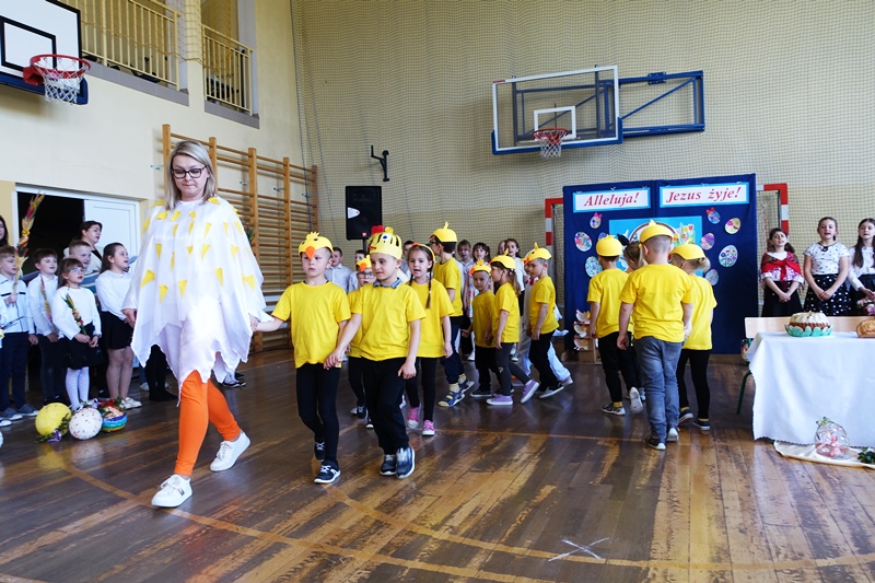 W środę, 16 kwietnia, uczniowie klas I- III i dzieci z Oddziałów Przedszkolnych pięknie zaprezentowali swoje umiejętności aktorskie, recytatorskie, taneczne i wokalne, przez które wprowadzili wszystkich uczestników w świąteczny nastrój.