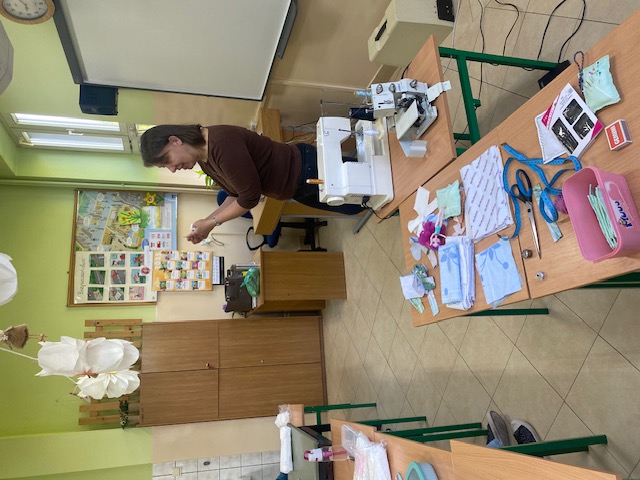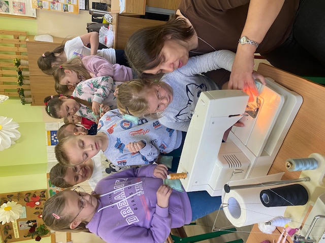 Dnia 28 kwietnia 2025 r. w klasie drugiej odbyły się zajęcia warsztatowe, na których obecna była pani krawcowa. Opowiadała o swojej pracy i pokazywała różne narzędzia , których używa w swojej pracy. Były to: duże nożyczki, miara, różne igły, nici, naparstek oraz maszyny do szycia. Dzieci dowiedziały się jak powstają ubrania- od pomysłu, przez mierzenie, wykonanie formy, mierzenie materiału, aż po uszycie gotowego stroju. Pani krawcowa pokazała dzieciom jak szyje się fastrygą. Każdy próbował swoich sił w szyciu i wykonał poduszkę- igielnik dla swojej mamy. Zajęcia były bardzo ciekawe i pouczające.