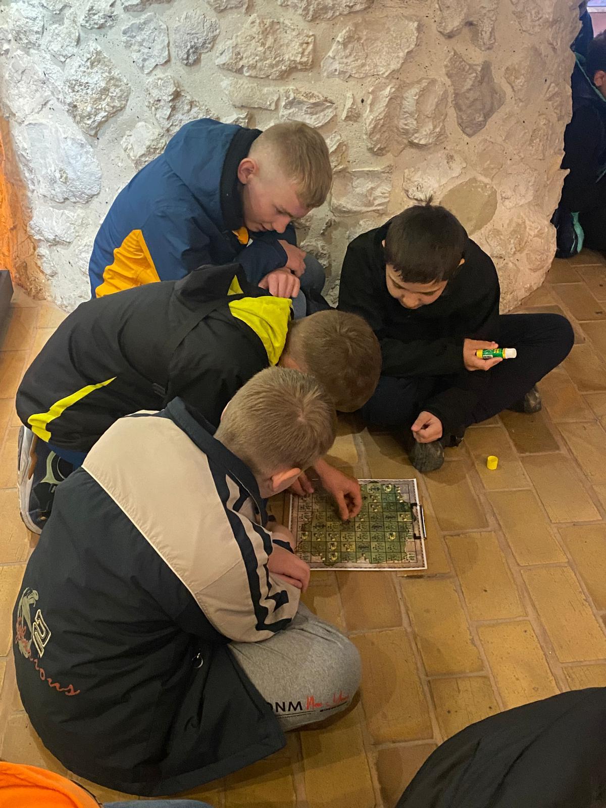 Pierwszym punktem programu było spotkanie z historią w tynieckim opactwie. Uczniowie wzięli udział w warsztatach poświęconych początkom państwa polskiego. Wiedzę tę przyswajali poprzez udział w wielkoformatowej grze planszowej, co stanowiło ciekawe i angażujące uzupełnienie lekcji historii.