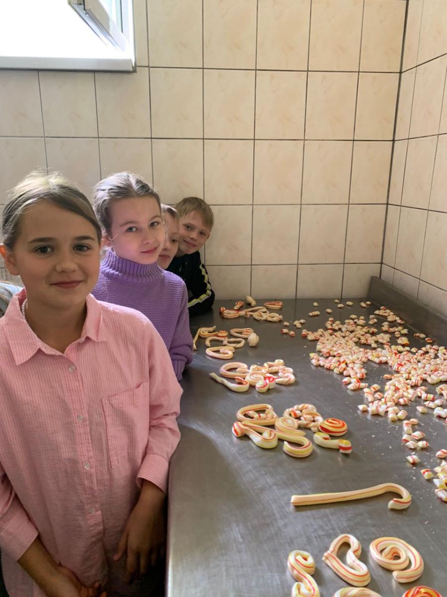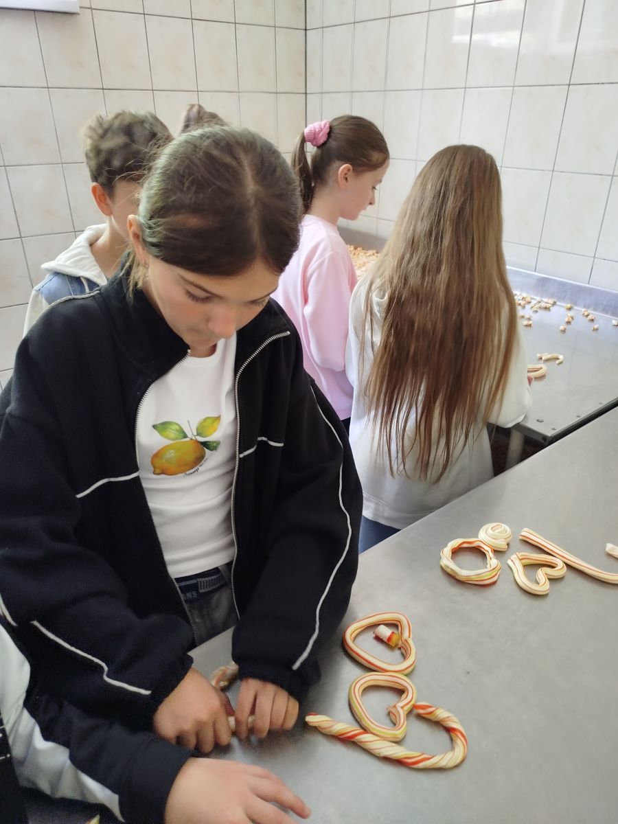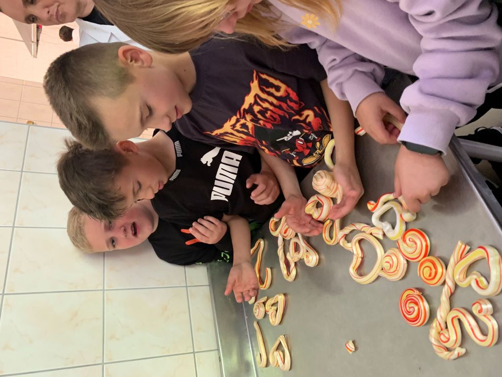 30 maja uczniowie klas 3a i 3b wzięli udział w warsztatach cukierniczych u Państwa Madziarów. Pokaz rozpoczynał się od zagotowania i wylania gorącej masy na specjalny stół. Następnie cukiernik dodawał aromat, który nadaje cukierkom określony smak. Dzieci bardzo zainteresowały się tzw. rozciąganiem cukru, czyli napowietrzaniem, które sprawiło, że zmienił on kolor. Podczas warsztatów uczniowie obserwowali nie tylko produkcję cukierków, ale mieli też okazję samodzielnie wykonać słodkości według własnego pomysłu i zapakować swoje wyroby do specjalnych woreczków.