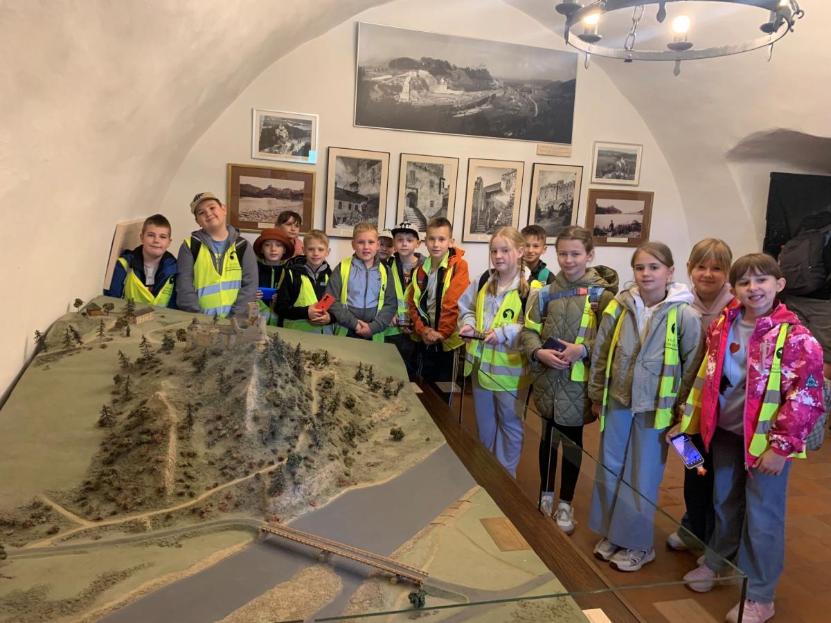 Później trzecioklasistów przywitała pani Elżbieta- przewodnik, nauczyciel historii, która w porywający sposób raz gwarą, raz w języku polskim opowiedziała o historii Spisza. Spacerowali po Zaporze Czorsztyńskiej, zwiedzili Spichlerz, Wozownię, Cmentarz rodziny Salomonów i Celnicę. Kolejnym punktem był pobyt w Domu Kultury, gdzie poznali stroje ludowe tego regionu,  podstawowy krok Czardasza oraz lokalne tradycje. Na koniec pojechali do Łapsz Niżnych, gdzie mogli poprzez multimedialną ekspozycję  poznawać  faunę i florę  Spisza, a także Pienin i Beskidów. Na koniec zwiedzili piękny, zabytkowy kościół w Niedzicy pw. Św. Bartłomieja.