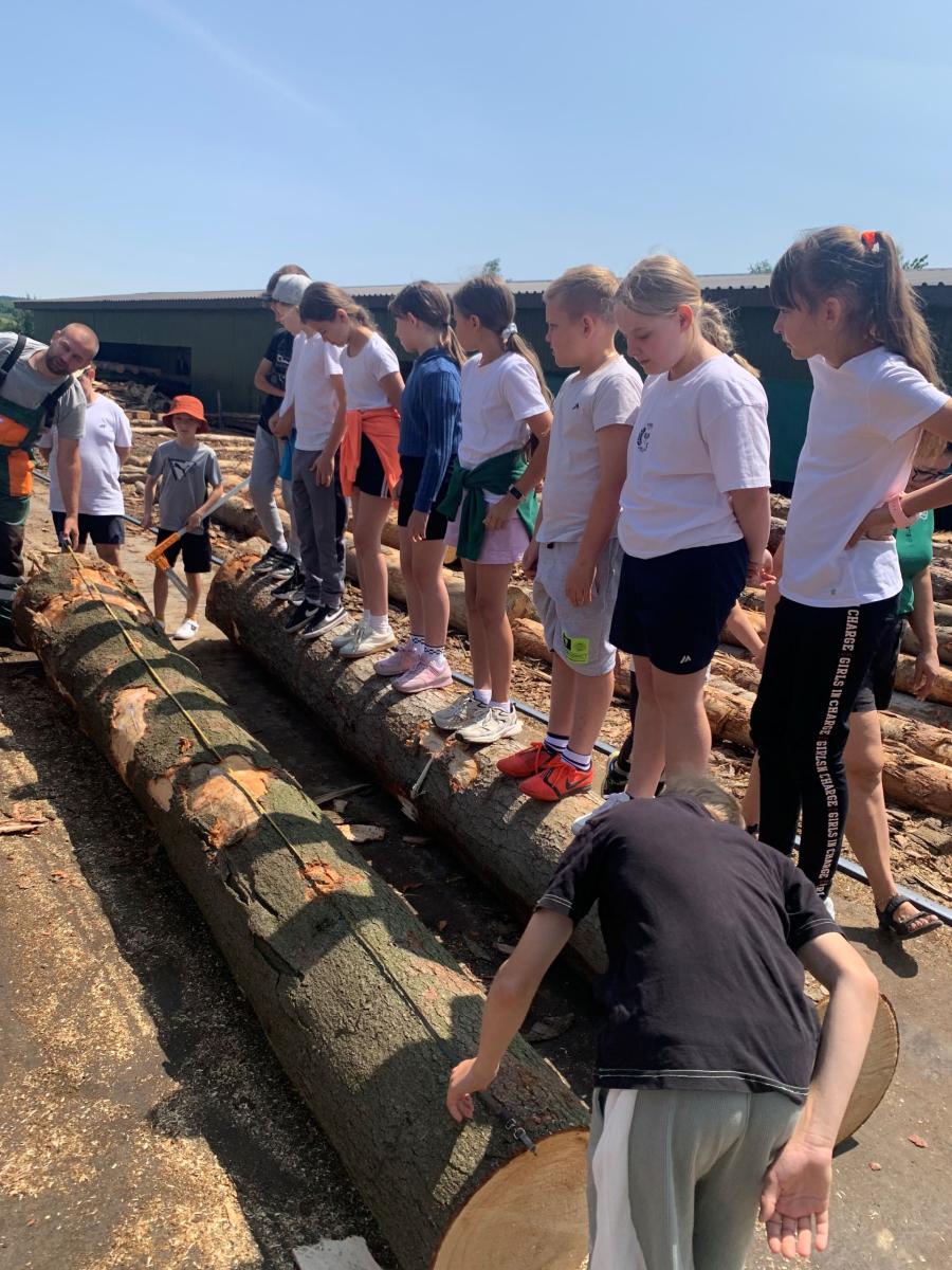 Dnia 13 czerwca uczniowie klasy 3a wybrali się na niezwykle ciekawą i pełną wrażeń lekcję w Tartaku „Dziunek” w Przysietnicy. Była to wyjątkowa okazja, by na własne oczy zobaczyć, jak wygląda obróbka drewna – od pnia po gotowy materiał.