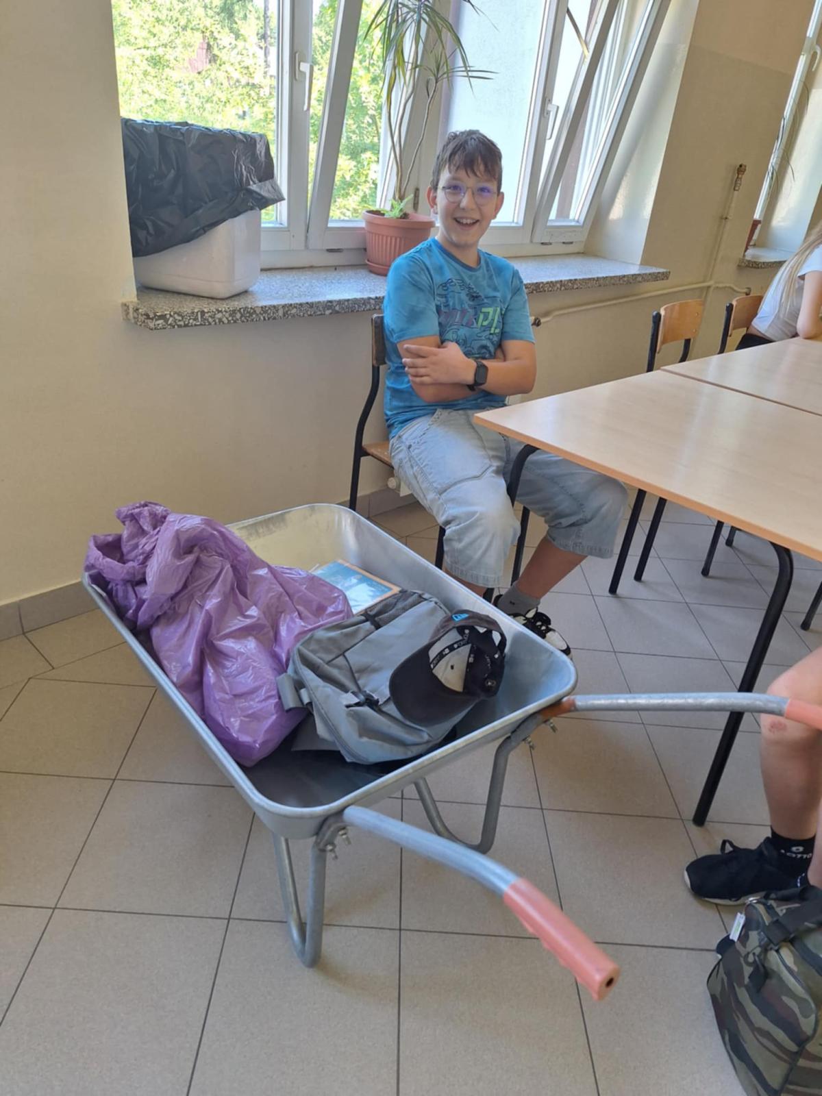 Tego dnia tradycyjne plecaki zostały zastąpione przez... najbardziej zaskakujące i pomysłowe zamienniki! Uczniowie przynieśli swoje podręczniki i przybory szkolne w walizkach, koszach na zakupy, pudełkach, skrzynkach narzędziowych, wózkach dziecięcych, a nawet w basenach i lodówkach turystycznych. Kreatywność i poczucie humoru uczestników zrobiły ogromne wrażenie na nas wszystkich!