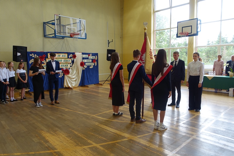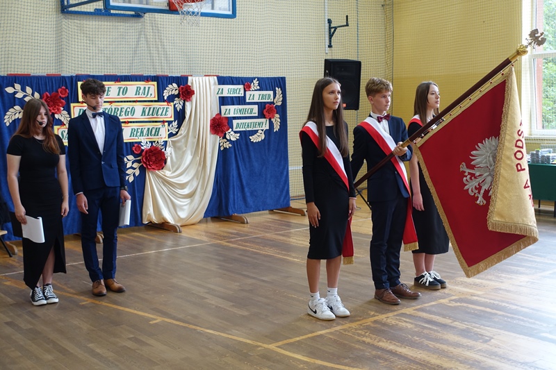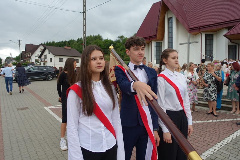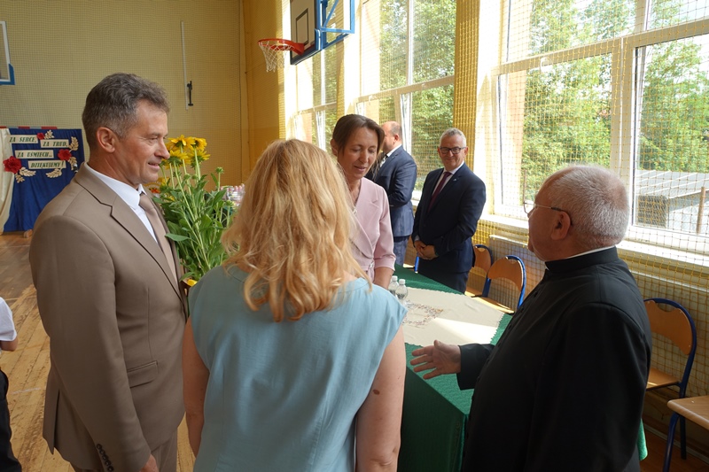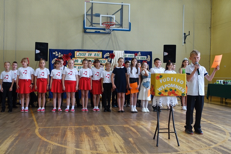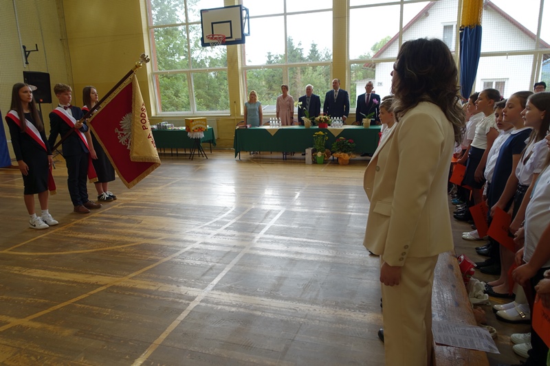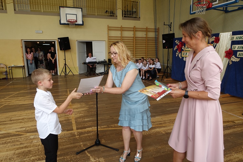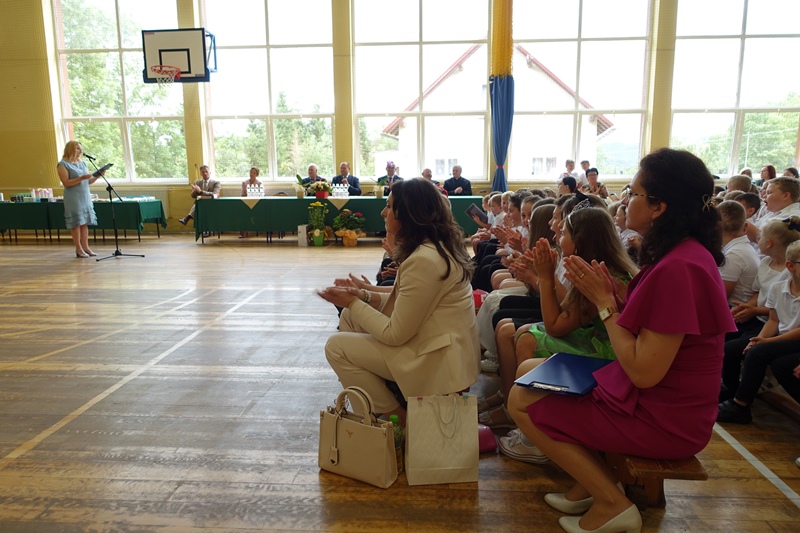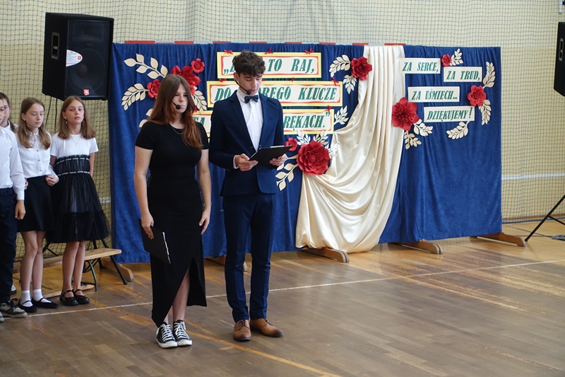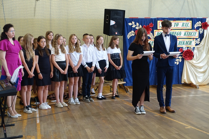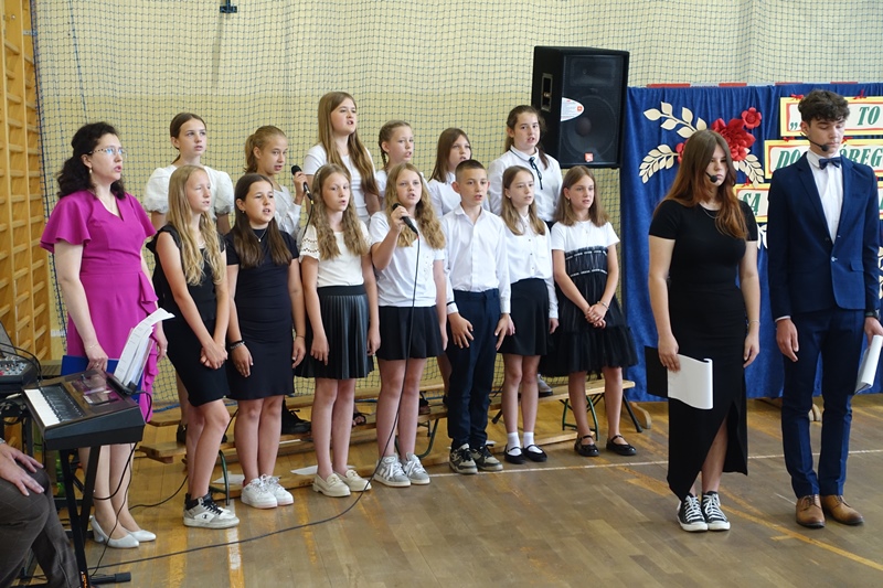 27 czerwca odbyło się w naszej szkole uroczyste zakończenie roku szkolnego 2024/2025. Po mszy świętej miała miejsce akademia przygotowana przez uczniów klasy 3a, 3b i 8 pod kierunkiem swoich wychowawców, a następnie pożegnanie ósmoklasistów oraz rozdanie świadectw i nagród. W czasie akademii pożegnano panią Barbarę Owsiankę, która po 32 latach oddanej pracy w naszej szkole przeszła na wcześniejszą emeryturę. Po akademii uczniowie udali się na ostatnie w tym roku szkolnym spotkanie z wychowawcami, podczas którego omówili zasady bezpiecznego zachowania się w czasie letniego wypoczynku.
