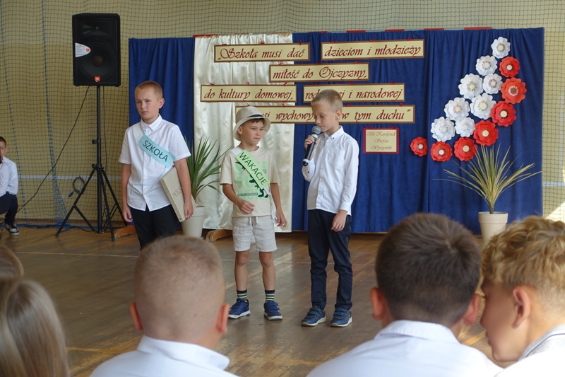W drugiej części uroczystości uczniowie klasy 3 przygotowali inscenizację pt. „Żegnaj lato - witaj szkoło!” Ich zaangażowanie i talent sprawiły, że początek nowego roku szkolnego nabrał wyjątkowego charakteru.