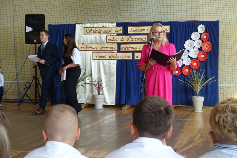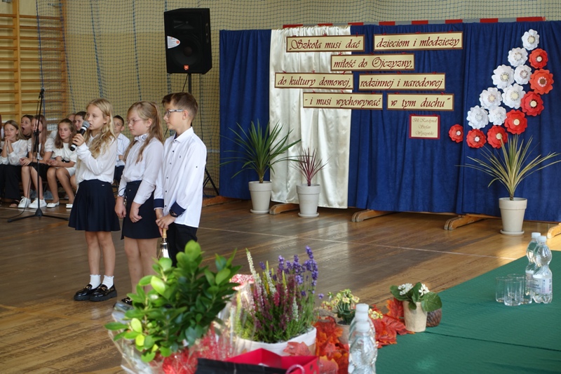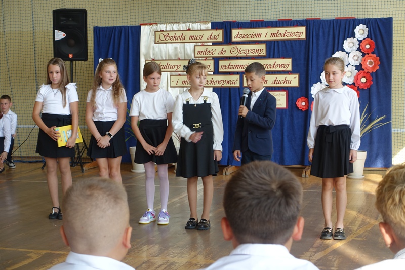 Po wspólnej modlitwie wyruszyliśmy w przemarszu do szkoły, gdzie odbyła się uroczysta akademia. W tym roku szczególną uwagę poświęciliśmy 86. rocznicy wybuchu II wojny światowej. Uczniowie klasy 8 zaprezentowali wzruszające teksty i refleksje, oddając hołd bohaterom tamtych tragicznych wydarzeń.