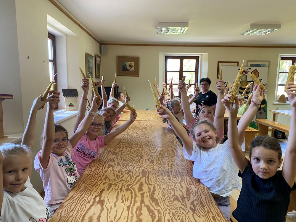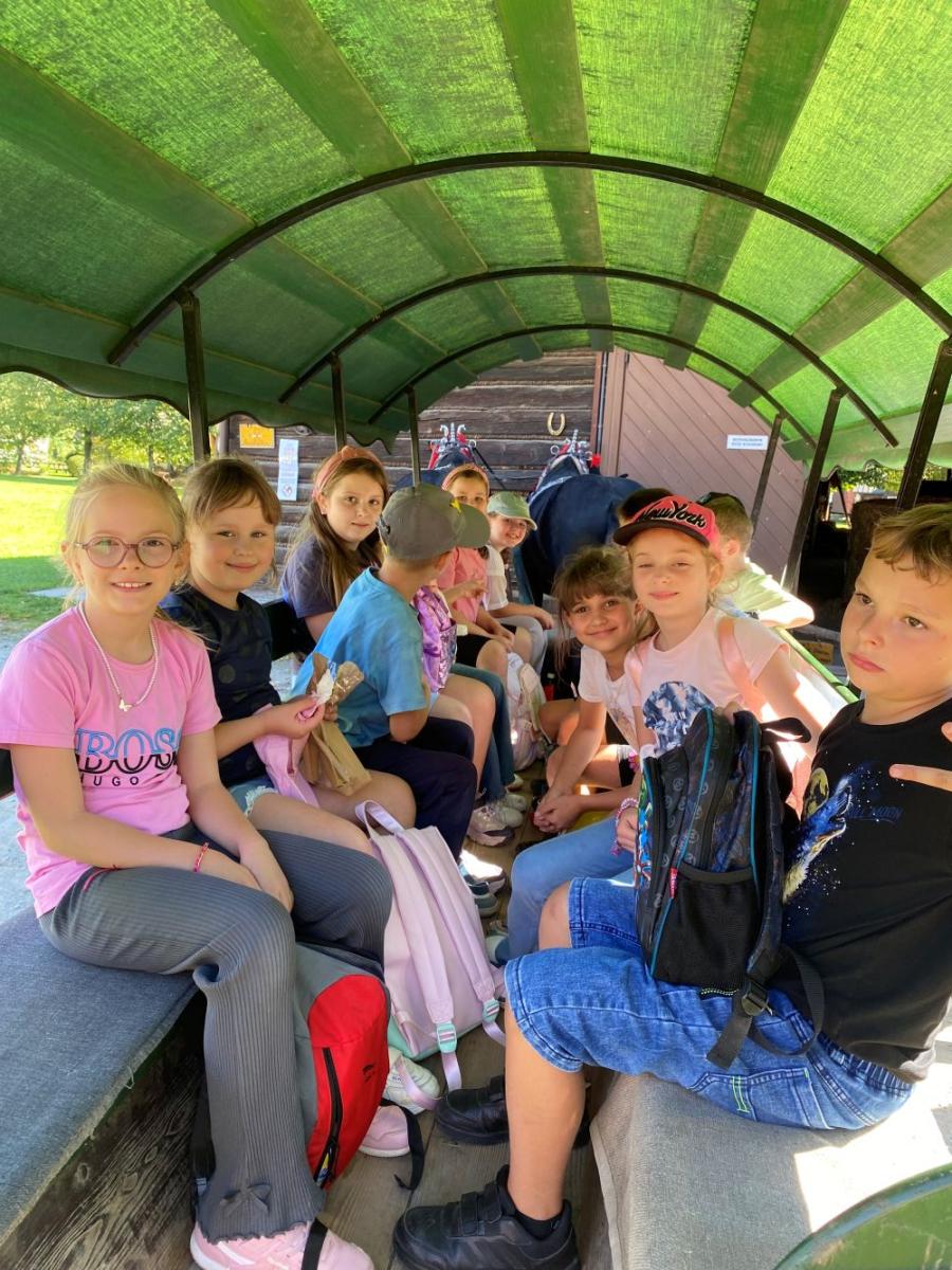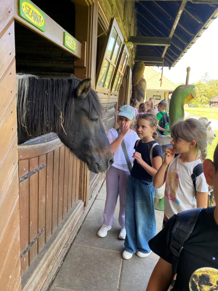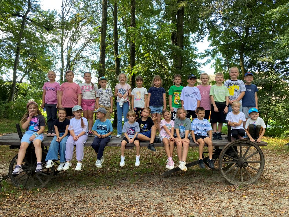 22 września klasy drugie były na wycieczce w Stróżach.Nasz pobyt rozpoczął się od zwiedzania pasieki oraz muzeum i skansenu pszczelarskiego. Tam uczniowie dowiedzieli się wiele ciekawych informacji o roli pszczół w środowisku naturalnym oraz jaki jest związek między człowiekiem a pszczołą. Dzięki zabawom i animacjom oraz teatrzykowi w sposób przyjemny przyswoili wiedzę związaną z życiem pszczół. Kolejnym punktem harmonogramu były warsztaty pt.: Magia wosku pszczelego. Dzieci własnoręcznie wykonywały świece z węzy pszczelej. Wcześniej obejrzały prezentację na temat znaczenia wosku pszczelego dawniej i dzisiaj. Mogli posmakować różnego rodzaju miody podane na piernikach. Kolejną atrakcją była wizyta z gospodarzem u zwierząt. Później, dzięki przejażdżce wozem konnym po okolicy, mogli podziwiać piękną okolicę Bartnika. Wycieczka była udana. Pogoda dopisała. Dzieci wróciły zadowolone.
