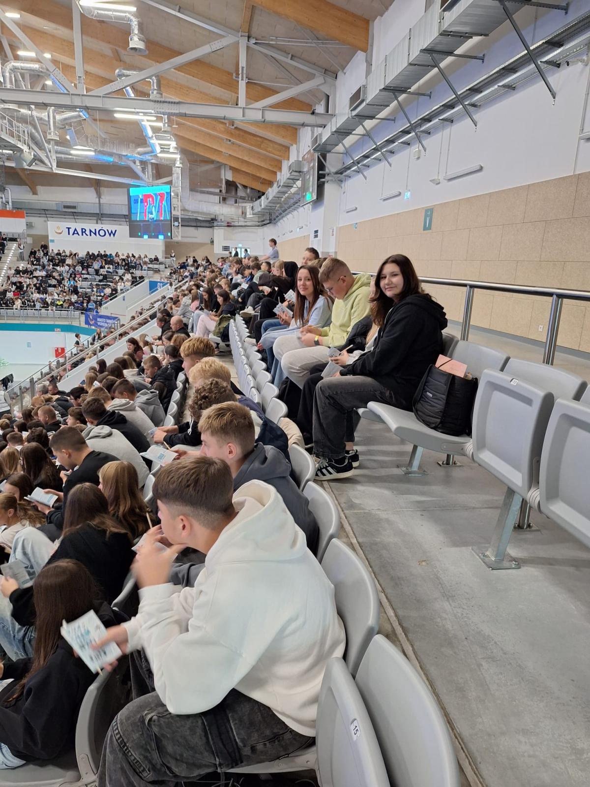 9 października uczniowie klasy ósmej wraz z p. Eweliną Konicką i s. Elżbietą Rozpondek, udali się do Tarnowa na diecezjalne spotkanie profilaktyczno- ewangelizacyjne, w którym wzięło udział 2 700 młodych z diecezji tarnowskiej. Młodzi wspólnie szukali odpowiedzi, jak radzić sobie ze stresem i odkrywać sens życia w relacji z Bogiem.