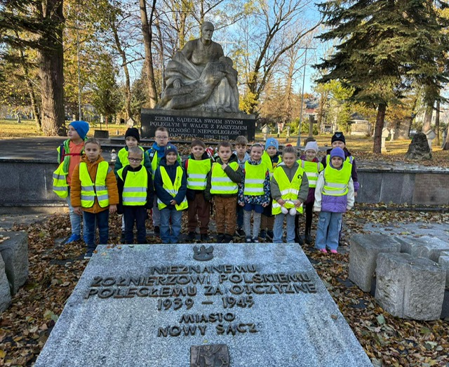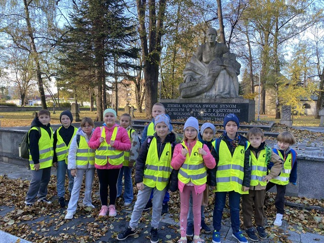 Kolejnym celem naszej wycieczki było oddanie czci poległym w obronie naszej Ojczyzny. Zapaliliśmy znicze przy pomniku Józefa Piłsudskiego oraz na Starym Cmentarzu. Dzieci zadawały mnóstwo pytań dotyczących historii naszego kraju i jej bohaterów.