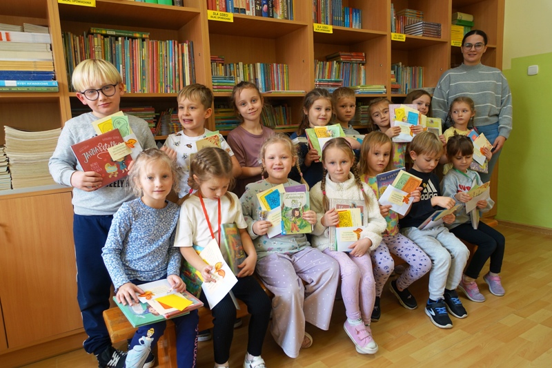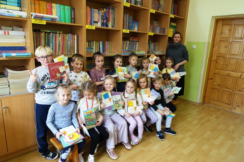 24 listopada dzieci z oddziału przedszkolnego odwiedziły Bibliotekę Szkolną. Nauczyciel bibliotekarz - Renata Jachimczak opowiedziała przedszkolakom o korzystaniu z księgozbioru i wskazała, które książeczki są przeznaczone dla najmłodszych czytelników. Objaśniła, jak należy wypożyczać książki, dbać o nie i zachęciła wszystkich do jak najczęstszego odwiedzania biblioteki. Potem odpowiadała na pytania dzieci a następnie każdy przedszkolak mógł sobie wypożyczyć książkę. Na zakończenie spotkania każde dziecko otrzymało pamiątkowy dyplom, zakładki do książek do własnoręcznego pokolorowania oraz słodki drobiazg.