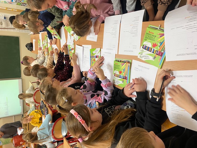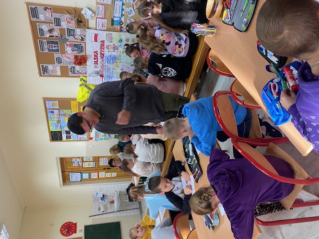 24.11.2025 r. uczniowie klasy IIa, IIb i III wzięli udział w warsztatach ,,Klub Małego Przedsiębiorcy”, rozwijających kreatywność, innowacyjne myślenie i podstawy przedsiębiorczości. W czasie zajęć dzieci rozmawiały na temat wynalazków: jakie znają i jakie korzyści niosą ludziom czy środowisku; Co to znaczy ,,wynaleźć coś” oraz „jak to zareklamować”. Zrozumiały, że każdy wynalazek powstał z potrzeby rozwiązania jakiegoś problemu. Następnie, każde dziecko miało za zadanie wymyślić i narysować swój wynalazek i opowiedzieć o nim. Przedstawić, jakie korzyści są z nim związane. Dzieci miały różne, ciekawe propozycje - wykazały się pomysłowością.
