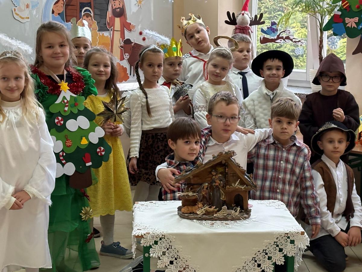 Młodzi artyści z ogromnym zaangażowaniem wcielili się w role aniołów, królów, pastuszków, dzieci, choinki oraz gwiazdki. Rodzice zadbali o piękne stroje i rekwizyty, które uświetniły występ. Nad łączeniem scen czuwał narrator, który wprowadzał widzów w wyjątkowy nastrój. Muzyka dodatkowo podkreśliła atmosferę nadchodzących świąt. Nie zabrakło kolęd, pastorałek oraz świątecznych piosenek, które dzieci zaprezentowały z wielką radością.