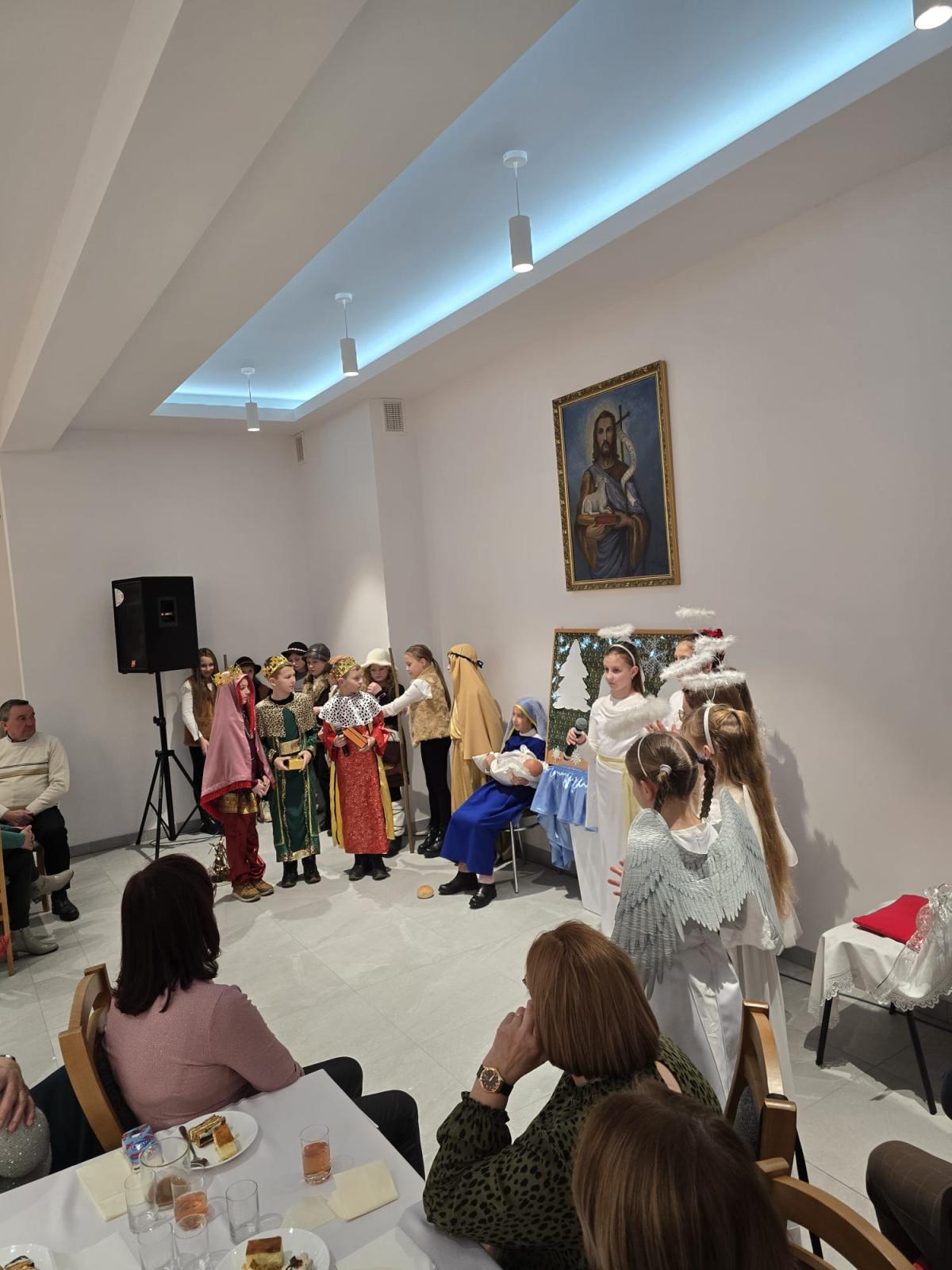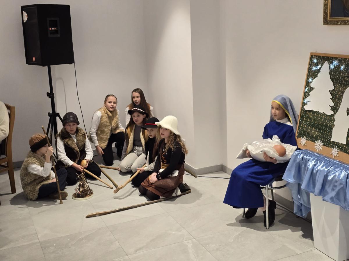 Dzieci z ogromnym zaangażowaniem wcieliły się w role znane z bożonarodzeniowej historii. Nie zabrakło Maryi, Józefa, aniołów, pasterzy oraz Trzech Króli. Piękne stroje, scenografia oraz świąteczne kolędy wprowadziły wszystkich w ciepłą, radosną atmosferę. Seniorzy z uśmiechem i wzruszeniem dziękowali dzieciom za piękny występ, a uczniowie mieli okazję do bezpośredniego spotkania ze starszym pokoleniem.