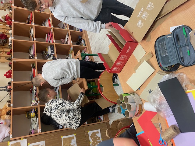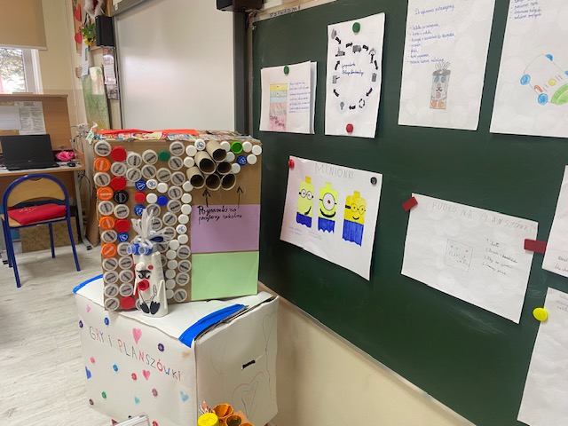 Uczniowie klasy 3 w roku szkolnym 2025/2026 realizują projekt Akademia Łowców Odpadów. To innowacyjny program edukacyjny, rozwijający u dzieci świadomość ekologiczną oraz pokazujący, jak w praktyce dbać o środowisko. Program ma na celu uświadamianie uczniom, jak ważna jest prawidłowa segregacja odpadów. Dzieci zrozumiały na czym polega Gospodarka Obiegu Zamkniętego– nieodłączny element codziennego życia każdego z nas. Pokazuje również, że odpady to wartościowe surowce, które dzięki ponownemu wykorzystaniu mogą stać się podstawą do tworzenia nowych produktów. W związku z tym, uczniowie w ramach zajęć edukacji technicznej tworzyli w grupach i indywidualnie projekty z wykorzystaniem zgromadzonych surowców. Każdy swój pomysł opracował w formie planu, a następnie przystąpiono do jego wykonania. W ten sposób powstało wiele ciekawych i pomysłowych prac.