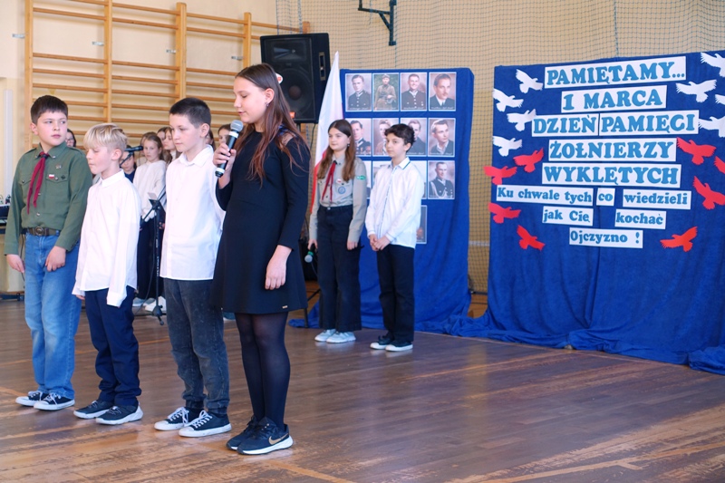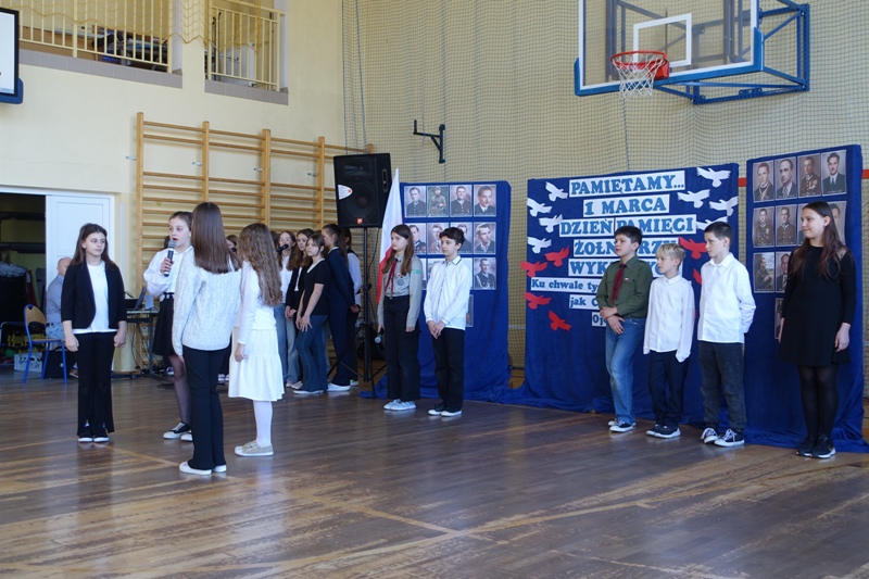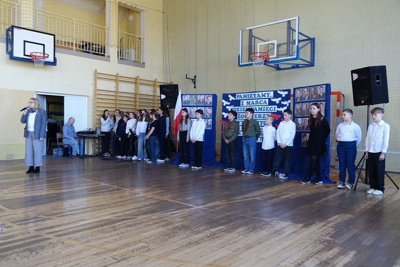 Czwartoklasiści w przejmujący sposób przypomnieli historię bohaterów podziemia niepodległościowego, oddając hołd tym, którzy po II wojnie światowej walczyli o wolną Polskę. Uroczystość uświetnił występ szkolnej grupy muzycznej „Amadeus”, który nadał wydarzeniu podniosły i refleksyjny charakter.