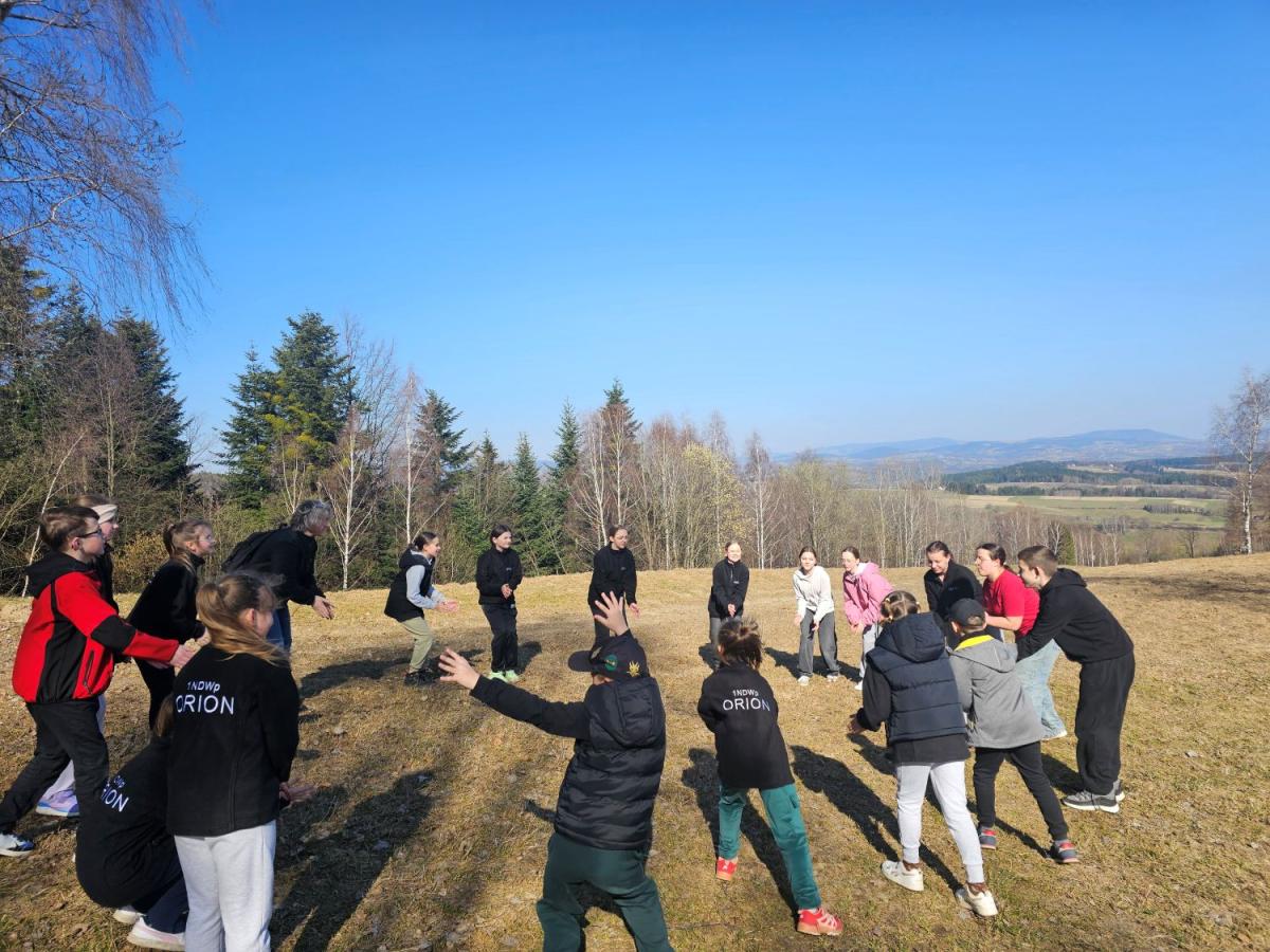 W sobotę 14.03.2026 r. odbyła się wiosenna zbiórka 1 NDWp ORION, podczas której zuchy i harcerze mieli okazję utrwalić swoją wiedzę na temat znaków patrolowych. W czasie wędrówki na Targowisko zuchy odczytywali znaki patrolowe, szukali wskazówek oraz wykonywali zadania przygotowane przez harcerzy. Po dotarciu na miejsce zbiórki i spotkaniu z harcerzami, razem rozpalono ognisko. Nie zabrakło również ruchowych zabaw i gier integracyjnych, które dostarczyły uczestnikom wiele radości i pozytywnej energii. Wspólna aktywność pozwoliła rozwijać współpracę w drużynie, spostrzegawczość oraz spryt – cechy niezwykle ważne w harcerskiej przygodzie. Zbiórka była okazją do budowania przyjaźni i wzmacniania ducha harcerskiego.