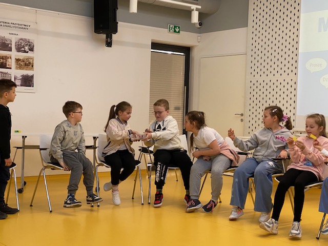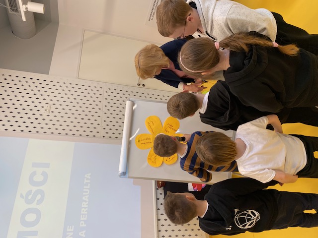 Zajęcia były nie tylko okazją do głośnego czytania klasyki literatury, ale także do twórczej dyskusji o tym, jak nasze zachowanie wpływa na relacje z innymi. Podczas pracy w grupach dzieci wymyślały różne możliwe zakończenia utworu oraz odgadywały jakie uczucia mogły towarzyszyć występującym postaciom. Na zakończenie wykonały kwiaty przedstawiające magiczne słowa. Dziękujemy bardzo za zaproszenie oraz przygotowanie zajęć.