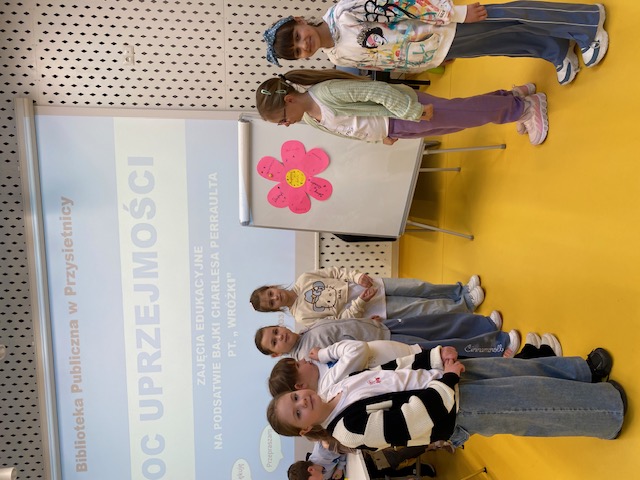 Na zaproszenie Biblioteki Publicznej w Przysietnicy, uczniowie klas drugich wzięli udział w zajęciach edukacyjnych – Moc Uprzejmości, których bohaterką stała się baśń Charlesa Perraulta pt. „Wróżki”. Podczas spotkania uczniowie przenieśli się w świat pełen czarów, by poznać losy dwóch sióstr i odkryć tajemnice darów otrzymanych od staruszki. Wspólnie zastanawialiśmy się, dlaczego dobre słowo i życzliwość mają tak wielką moc oraz czy warto być pomocnym bez oczekiwania nagrody.