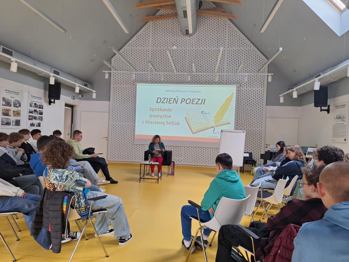 20 marca w Bibliotece Publicznej w Przysietnicy z okazji Międzynarodowego Dnia Poezji odbyło się niecodzienne spotkanie autorskie. W wydarzeniu uczestniczyli uczniowie klas VII i VIII, którzy mieli okazję zanurzyć się w świecie literatury i poznać twórczość, pochodzącej z Przysietnicy, Marzeny Setlak – autorki tomiku „Przemalowani’.