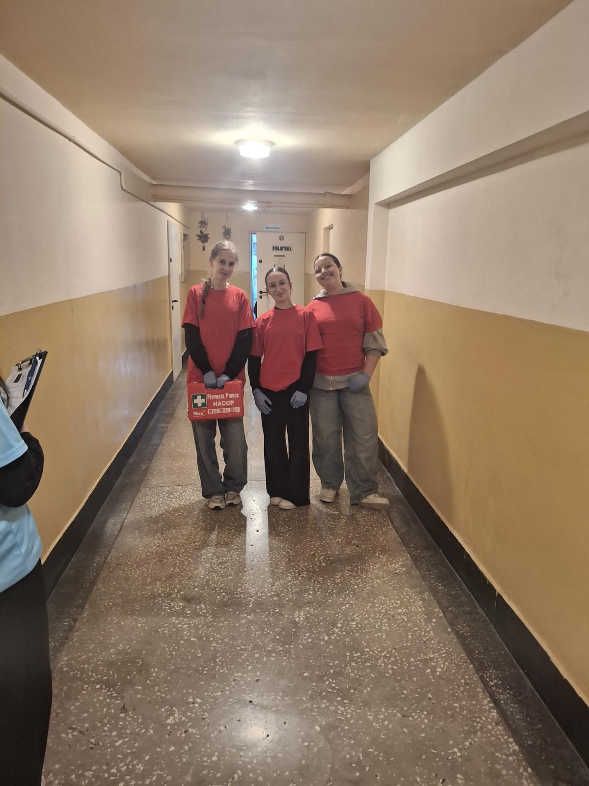 Uczniowie mieli do wykonania pisemny test jednokrotnego wyboru oraz zmierzyli się z wielozadaniowymi scenariuszami przygotowanymi przez Klub Impuls, wymagającymi od uczestników szybkiego podejmowania decyzji oraz współpracy w grupie. Nie zabrakło także profesjonalnych stacji przygotowanych przez studentów ratownictwa medycznego z Akademii Nauk Stosowanych w Nowym Sączu. Zadania obejmowały m.in. udzielanie pomocy przy porażeniu prądem, silnym krwotoku, ataku epilepsji czy w sytuacji tonięcia. Uczennice naszej szkoły - Oliwia Dorula, Mikulec Wiktoria, Król Dorota - wyróżniły się wyjątkową znajomością wszystkich zagadnień. Doskonale udzielały pierwszej pomocy, opatrywały rany, bezbłędnie wykonały resuscytację krążeniowo-oddechową i mistrzowsko rozwiązały test z zakresu udzielania pierwszej pomocy. Tym samym nasze uczennice zostały mistrzyniami - zdobyły I miejsce. Gratulujemy!