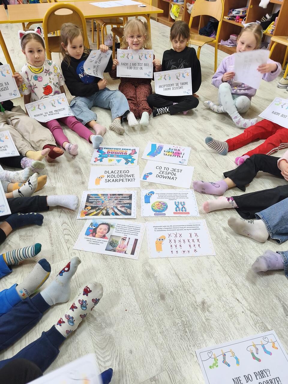 Świętowanie tego dnia to także nauka empatii, współpracy i szacunku dla innych. Cała zerówka razem odkrywała, jak ważne jest, bycie życzliwym dla każdego. Ten dzień pokazał nam, że nawet coś tak prostego, jak kolorowe skarpety, może uczyć nas ważnych rzeczy o przyjaźni, akceptacji i wspólnym działaniu.