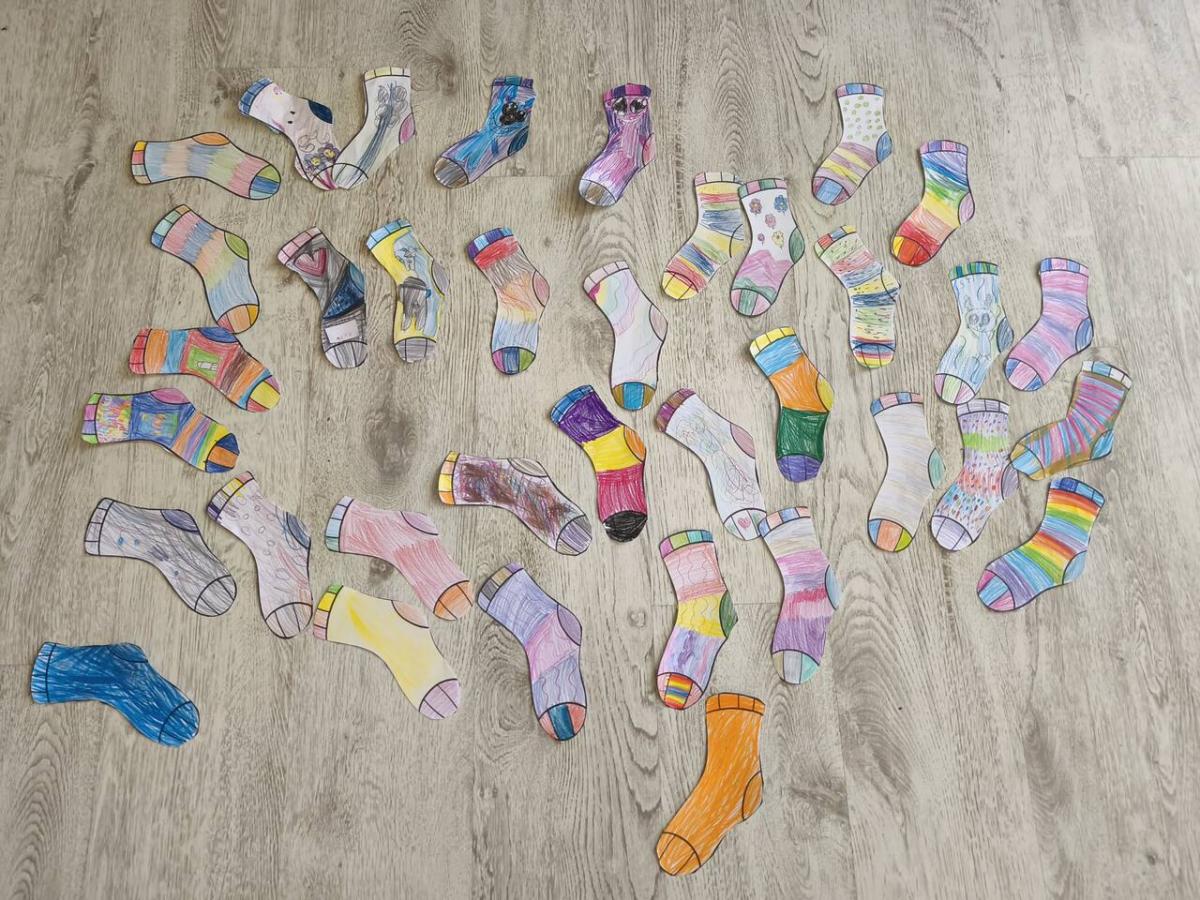 W naszej zerówce świętowaliśmy Światowy Dzień Zespołu Downa, czyli Dzień Kolorowej Skarpetki. Tego dnia każde dziecko przyszło w dwóch różnych skarpetkach - to taki symbol, że każdy z nas jest wyjątkowy i różnorodny. Na początku zajęć zastanawialiśmy się razem, czym w ogóle jest zespół Downa. W prosty sposób rozmawialiśmy o tym, że niektórzy ludzie rodzą się trochę inaczej, ale wszyscy są ważni i mają swoje talenty. Dzieci wysłuchały też krótkich opowieści, które pokazały, jak ważne jest akceptowanie innych i wspieranie się nawzajem. Podczas zabawy plastycznej każde dziecko mogło zaprojektować i pokolorować swoje własne skarpety. To ćwiczenie rozwijało wyobraźnię i pozwalało pokazać, że różnorodność jest piękna.